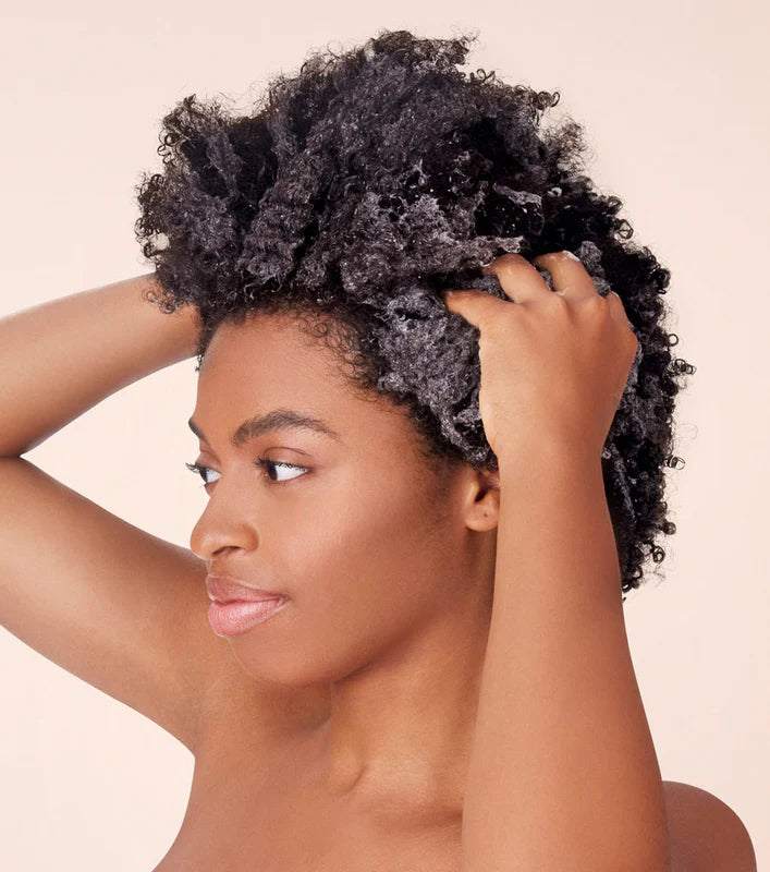 Kvinde der bruger produktet Not Your Mothers Tahitian Gardenia Flower Mango Butter Shampoo.